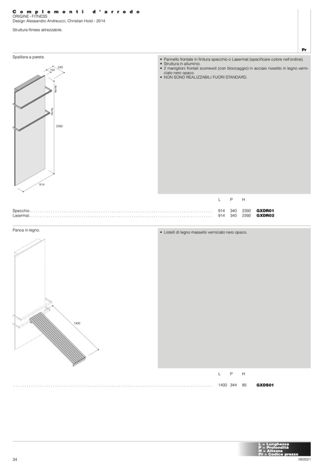 • Pannello frontale in finitura specchio o Lasermat (specificare colore nell’ordine).
