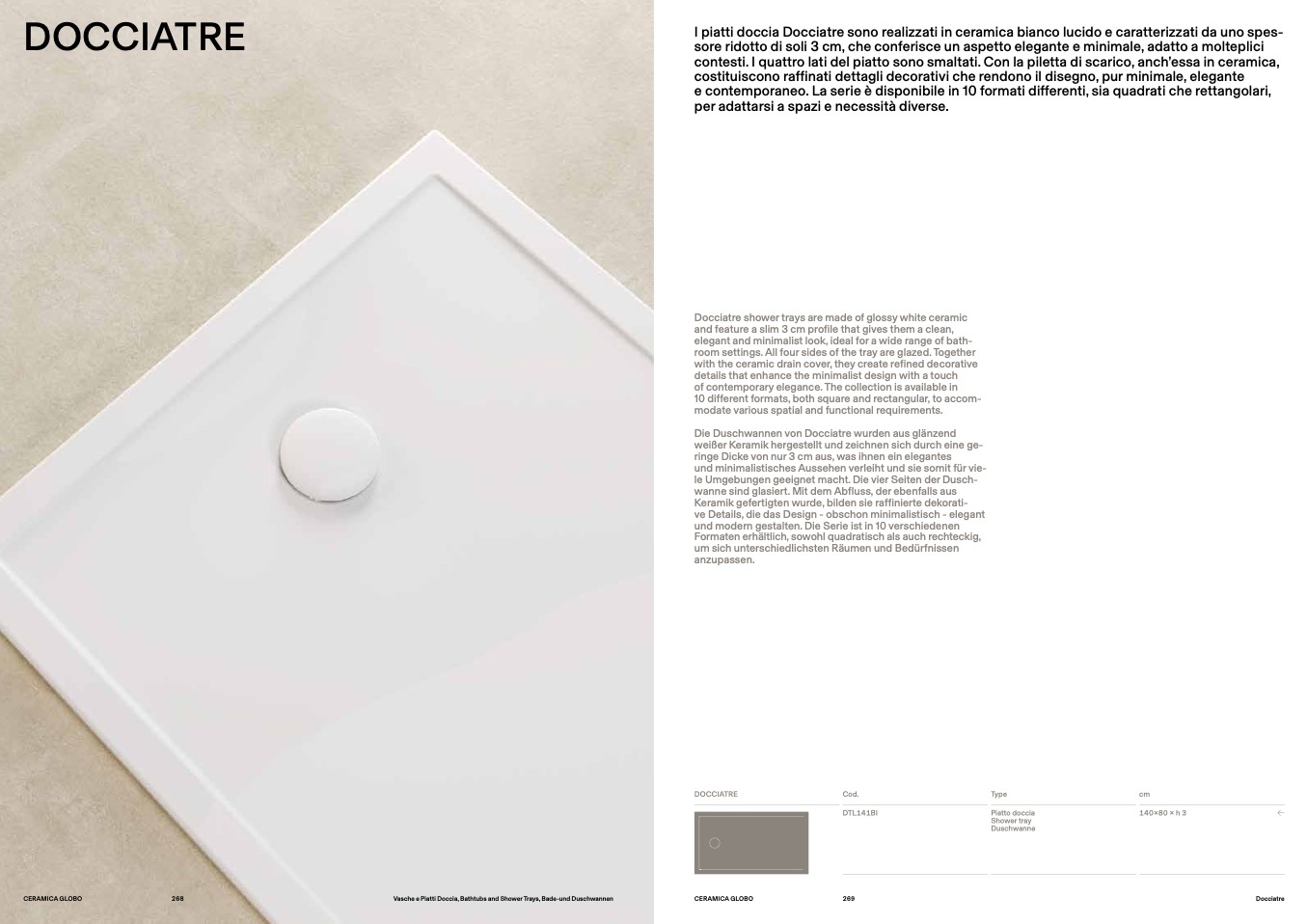 I piatti doccia Docciatre sono realizzati in ceramica bianco lucido e caratterizzati da uno spes