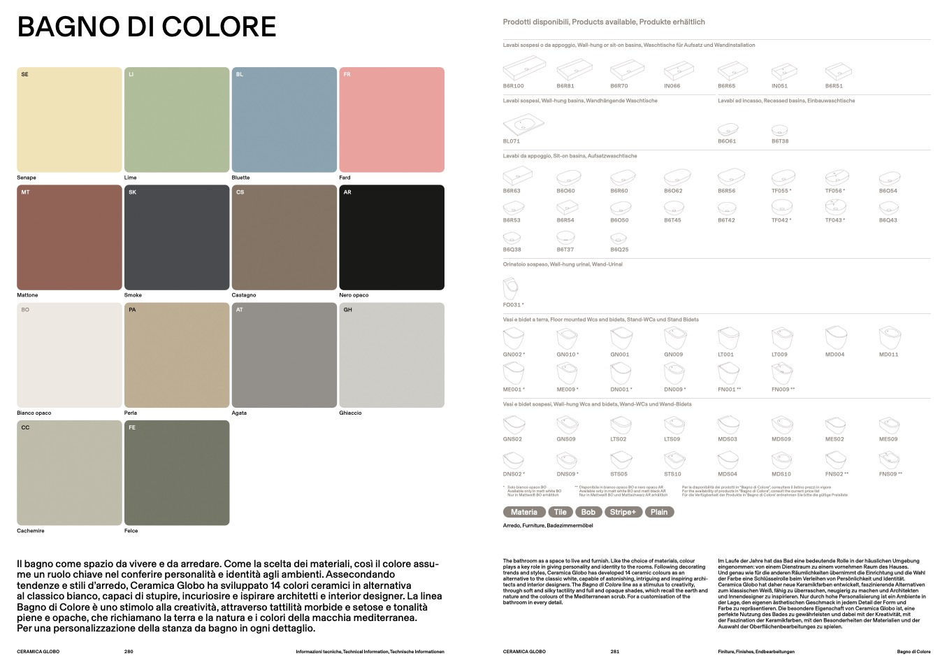trends and styles, Ceramica Globo has developed 14 ceramic colours as an