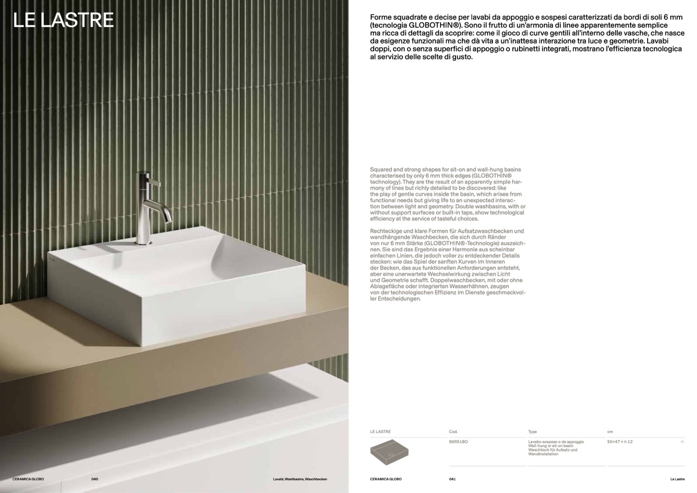 Forme squadrate e decise per lavabi da appoggio e sospesi caratterizzati da bordi di soli 6 m