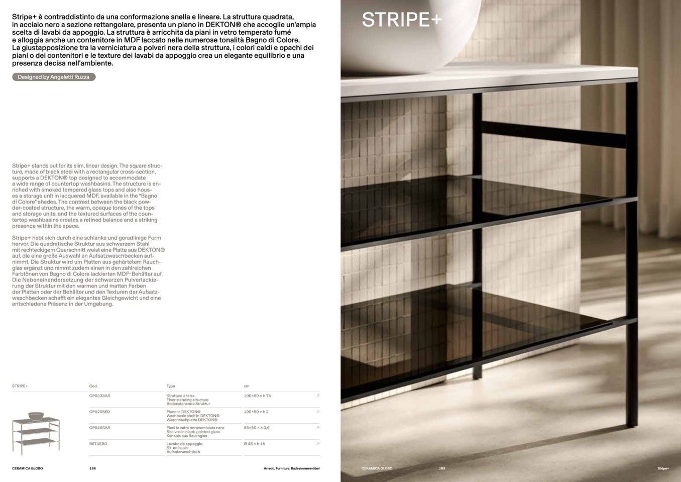 Stripe+ è contraddistinto da una conformazione snella e lineare. La struttura quadrata,