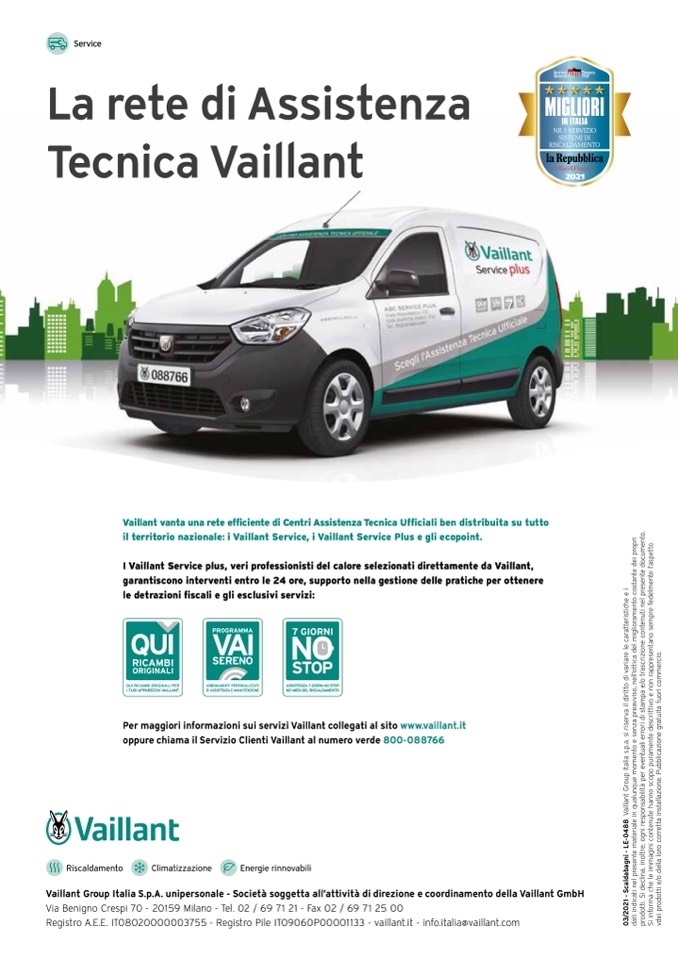 Vaillant vanta una rete efficiente di Centri Assistenza Tecnica Ufficiali ben distribuita su tutto