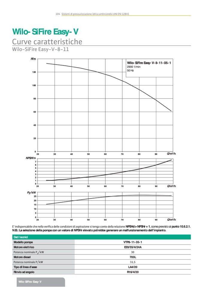 N:B.: La selezione della pompa con un valore di NPSHr elevato potrebbe generare un malfunzionamento dell’impianto.