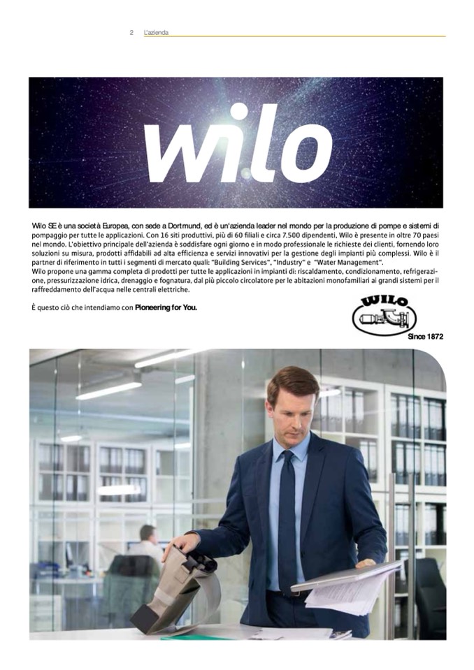 Wilo SE è una società Europea, con sede a Dortmund, ed è un‘azienda leader nel mondo per la produzione di pompe e sistemi di