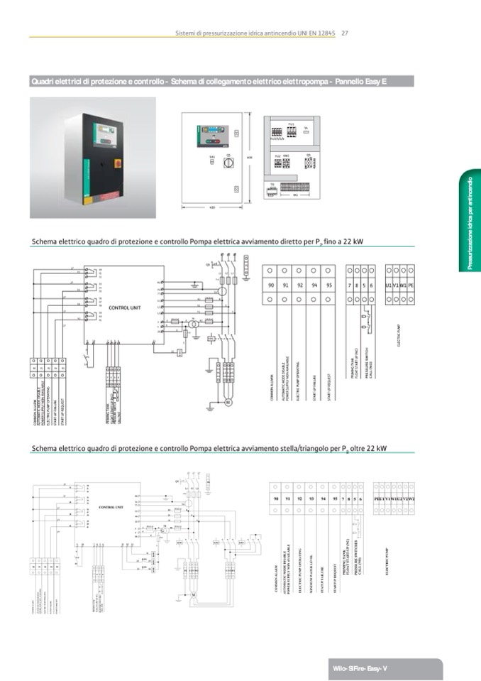 Quadri elettrici di protezione e controllo - Schema di collegamento elettrico elettropompa - Pannello Easy E