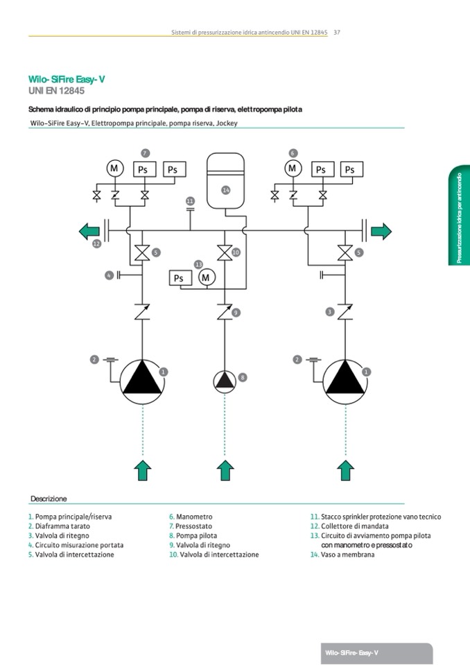 Schema idraulico di principio pompa principale, pompa di riserva, elettropompa pilota