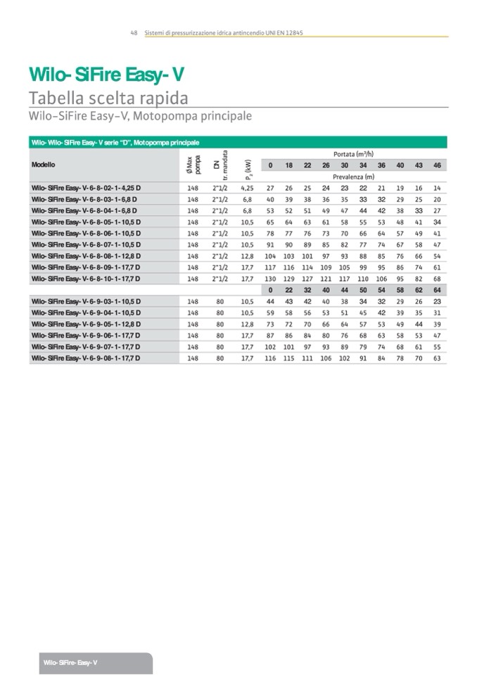Wilo-Wilo-SiFire Easy-V serie “D”, Motopompa principale