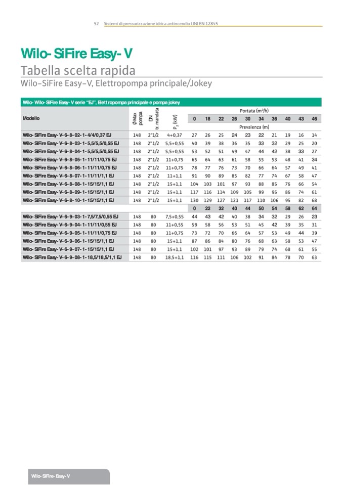 Wilo-Wilo-SiFire Easy-V serie “EJ”, Elettropompa principale e pompa jokey