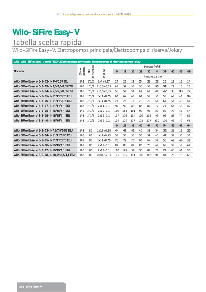 Wilo-Wilo-SiFire Easy-V serie “EEJ”, Elettropompa principale, Elettropompa di riserva e pompa jokey