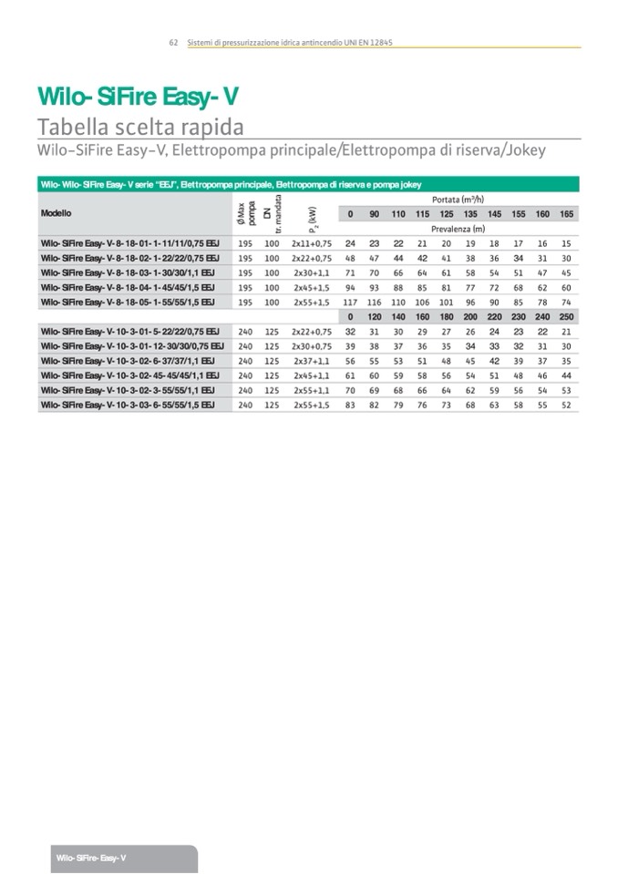 Wilo-Wilo-SiFire Easy-V serie “EEJ”, Elettropompa principale, Elettropompa di riserva e pompa jokey