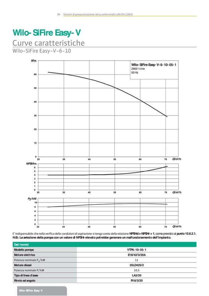 N:B.: La selezione della pompa con un valore di NPSHr elevato potrebbe generare un malfunzionamento dell’impianto.