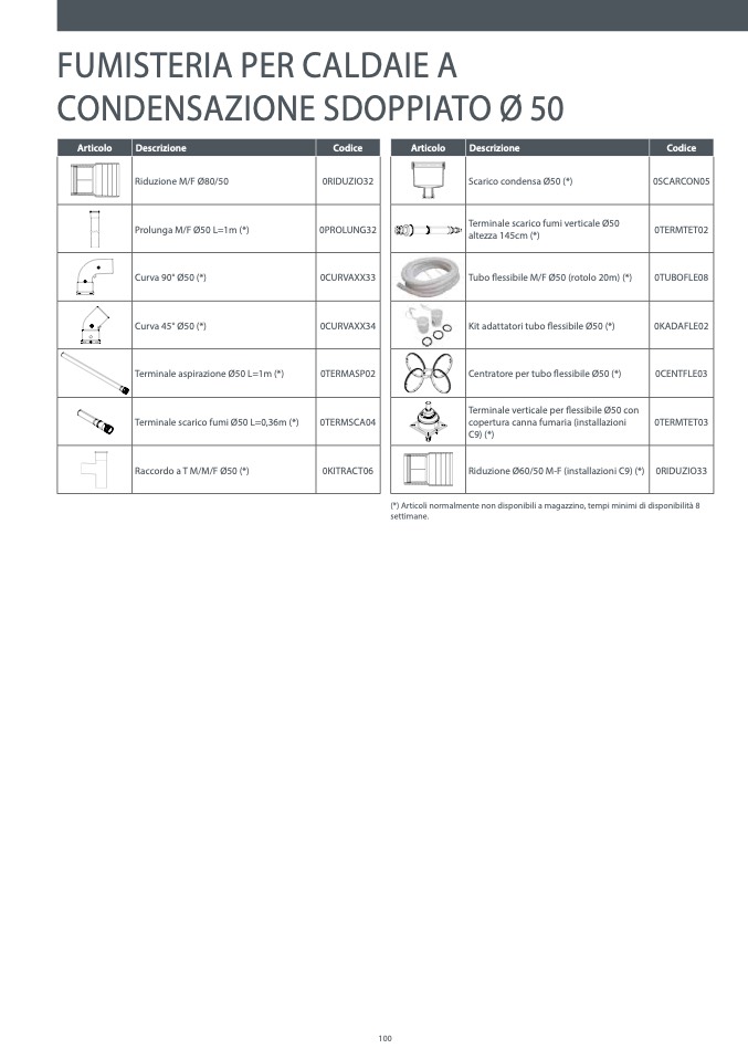 (*) Articoli normalmente non disponibili a magazzino, tempi minimi di disponibilità 8