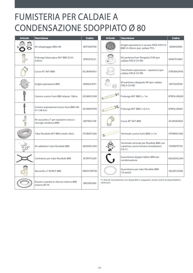 (*) Articoli normalmente non disponibili a magazzino, tempi minimi di disponibilità 8