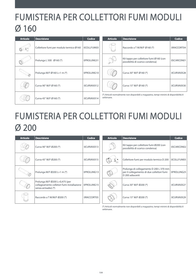 (*) Articoli normalmente non disponibili a magazzino, tempi minimi di disponibilità 8