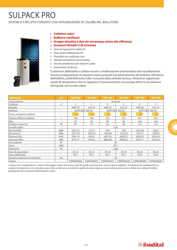 sonde di temperatura e la centralina solare che, se del caso, va scelta fra quelle elencate negli accessori solari qualora non si utilizzi una caldaia Fondital