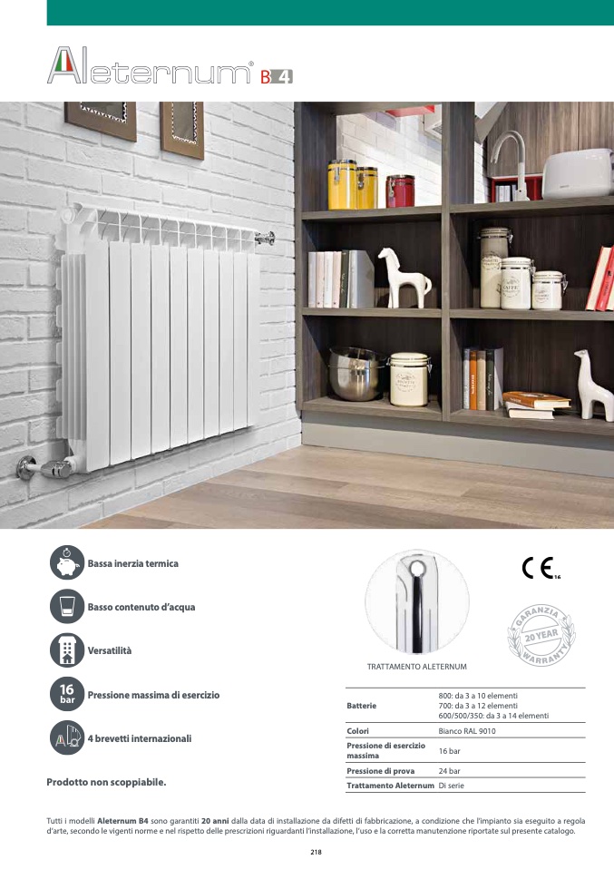 Tutti i modelli Aleternum B4 sono garantiti 20 anni dalla data di installazione da difetti di fabbricazione, a condizione che l’impianto sia eseguito a regola