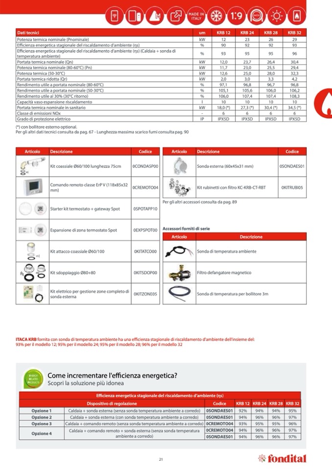 ITACA KRB fornita con sonda di temperatura ambiente ha una efficienza stagionale di riscaldamento d'ambiente dell'insieme del: