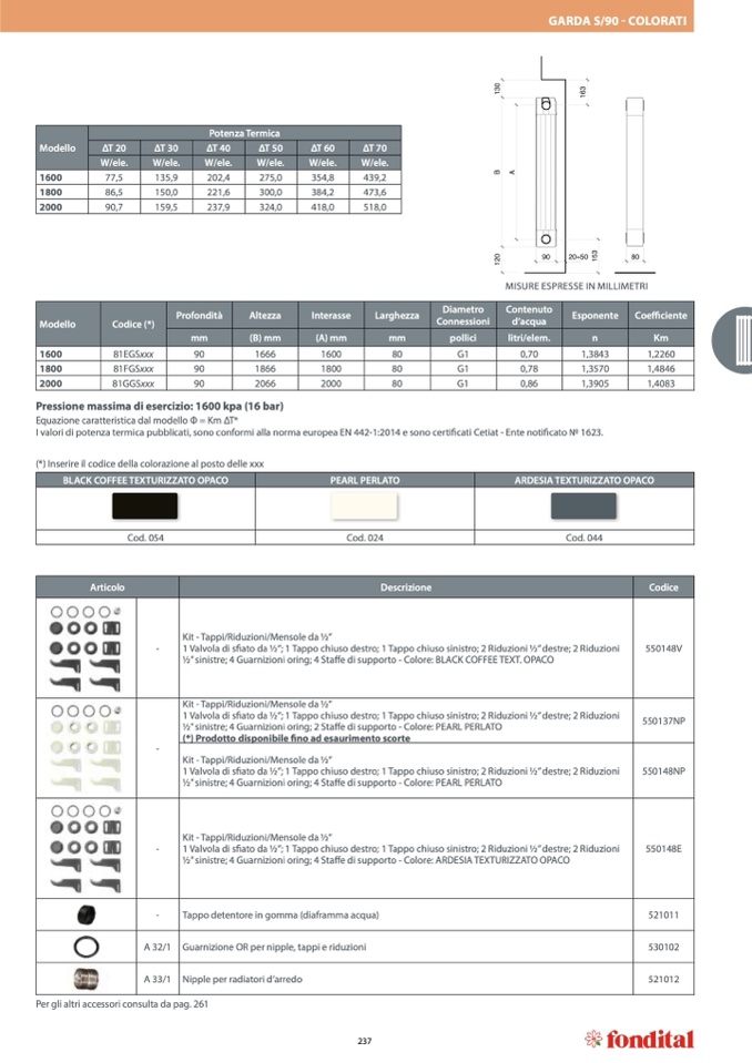 I valori di potenza termica pubblicati, sono conformi alla norma europea EN 442-1:2014 e sono certificati Cetiat - Ente notificato No 1623.