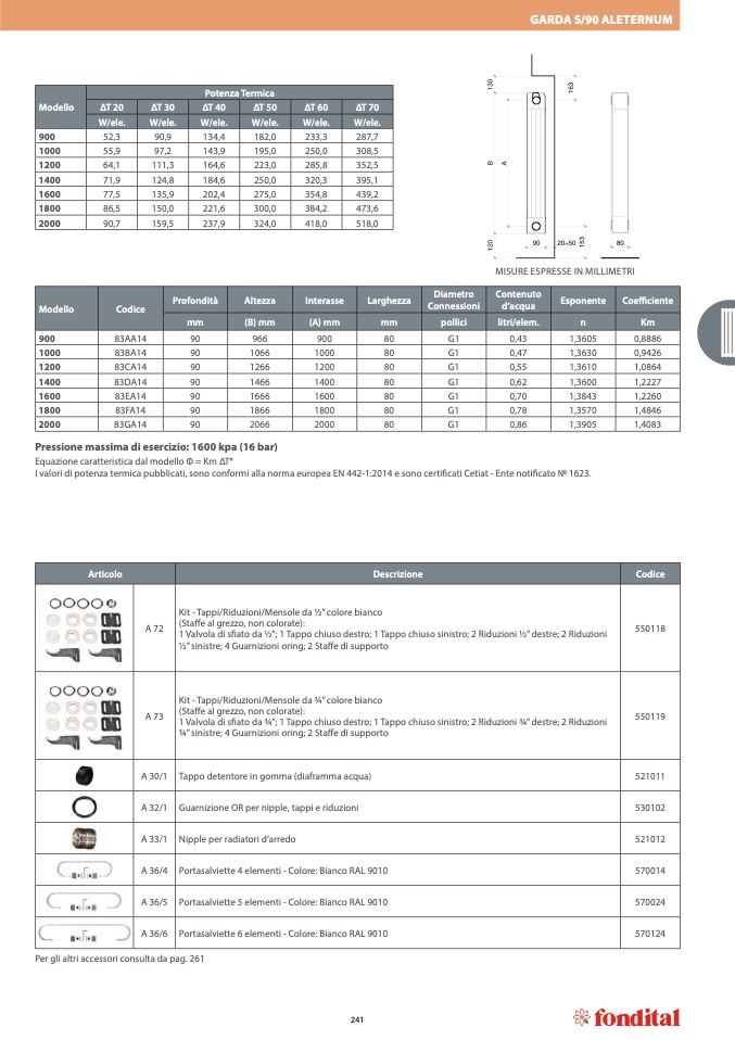 Pressione massima di esercizio: 1600 kpa (16 bar)