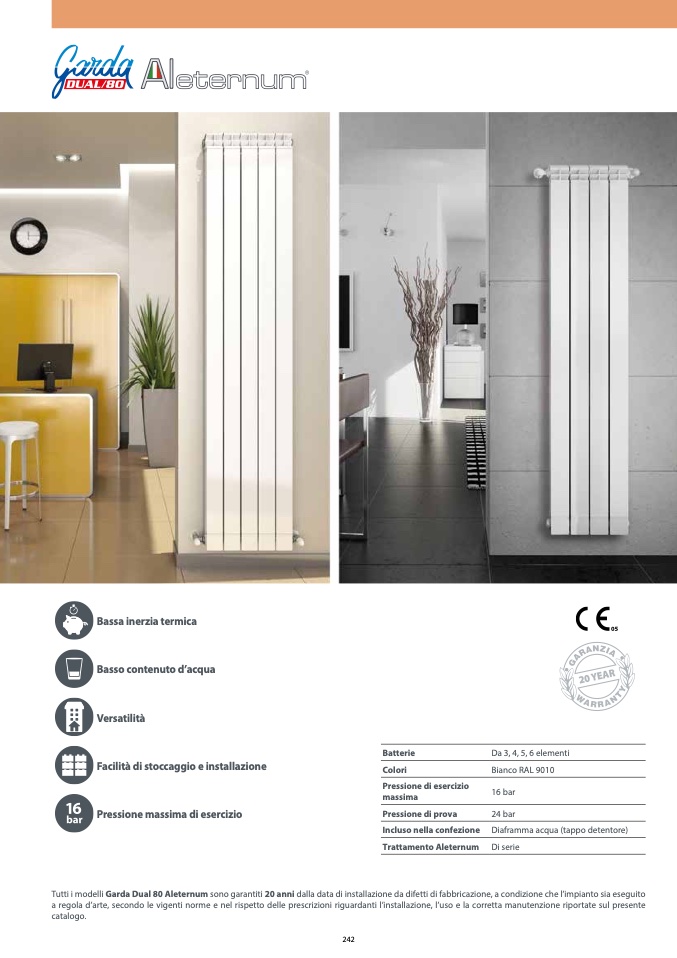 Tutti i modelli Garda Dual 80 Aleternum sono garantiti 20 anni dalla data di installazione da difetti di fabbricazione, a condizione che l’impianto sia eseguito