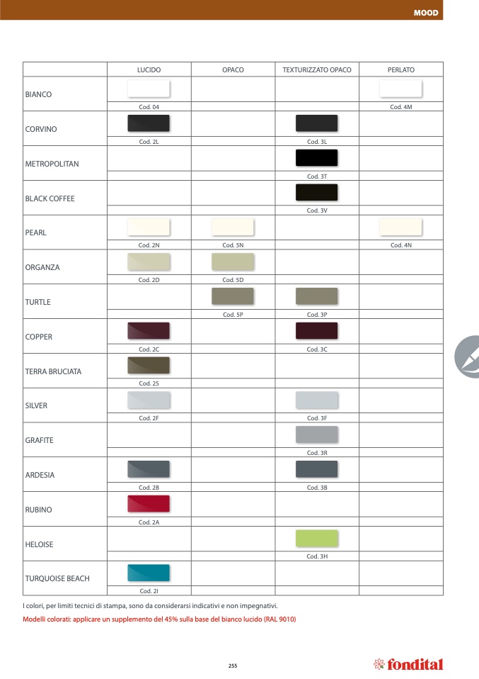 Modelli colorati: applicare un supplemento del 45% sulla base del bianco lucido (RAL 9010)