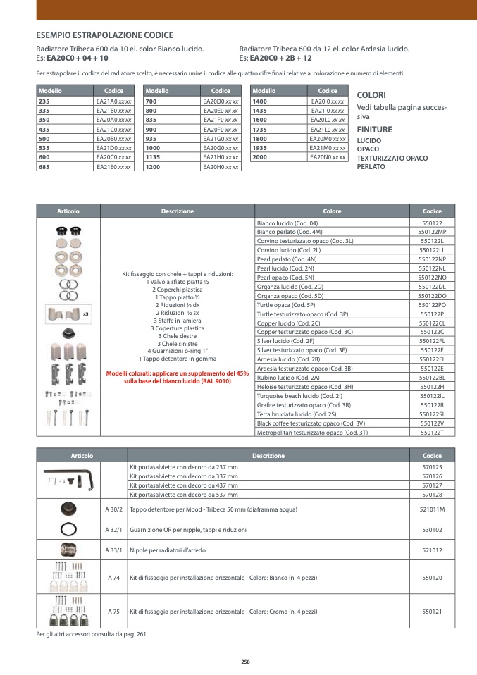 Per estrapolare il codice del radiatore scelto, è necessario unire il codice alle quattro cifre