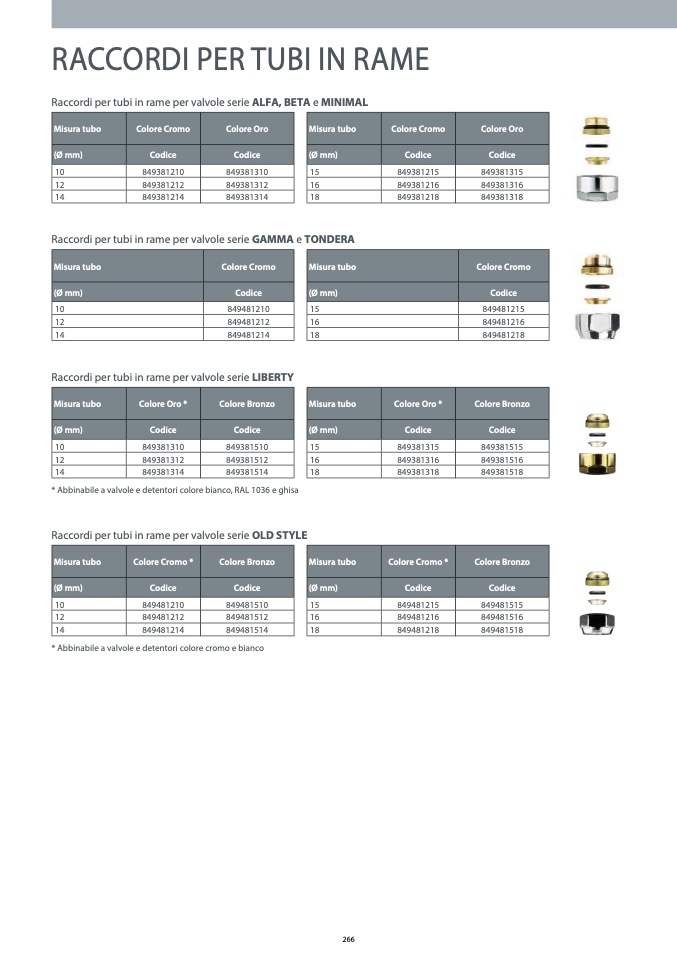 * Abbinabile a valvole e detentori colore bianco, RAL 1036 e ghisa