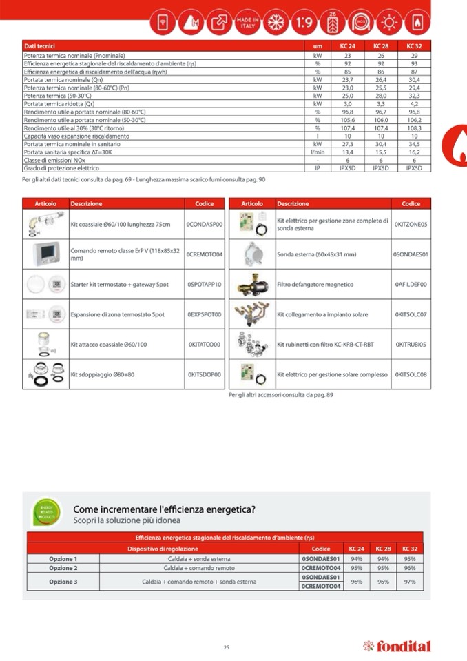 Per gli altri dati tecnici consulta da pag. 69 - Lunghezza massima scarico fumi consulta pag. 90
