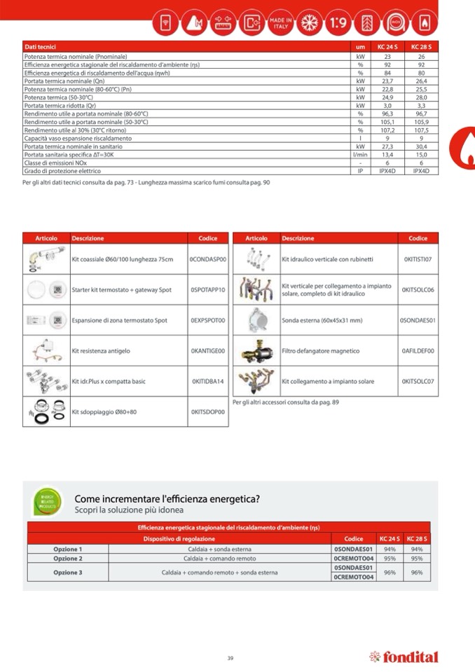 Per gli altri dati tecnici consulta da pag. 73 - Lunghezza massima scarico fumi consulta pag. 90