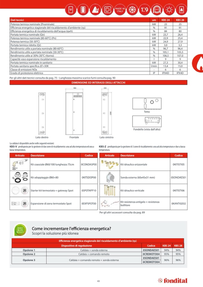 Per gli altri dati tecnici consulta da pag. 75 - Lunghezza massima scarico fumi consulta pag. 90