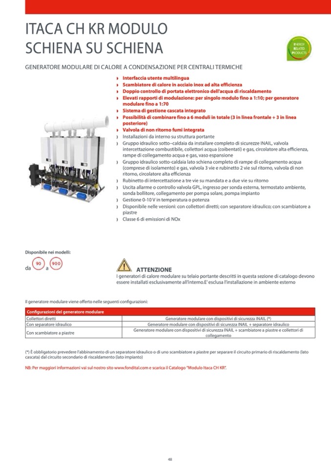 NB: Per maggiori informazioni vai sul nostro sito www.fondital.com e scarica il Catalogo ”Modulo Itaca CH KR”.