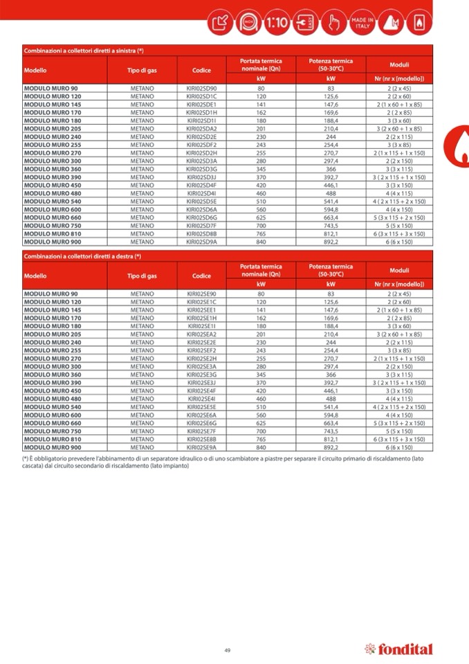 Combinazioni a collettori diretti a sinistra (*)