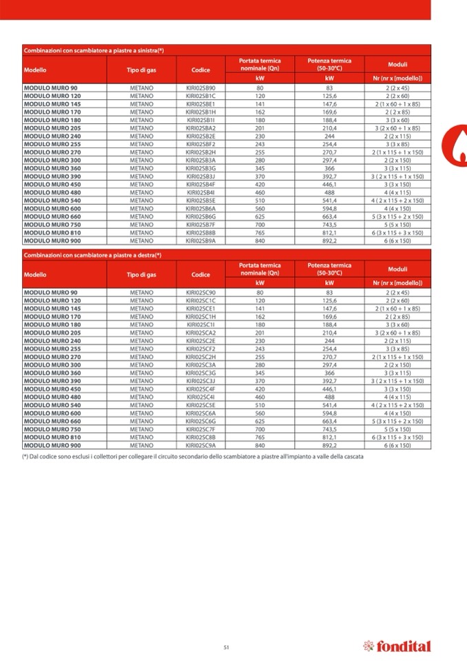 Combinazioni con scambiatore a piastre a destra(*)