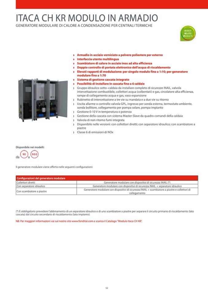 NB: Per maggiori informazioni vai sul nostro sito www.fondital.com e scarica il Catalogo ”Modulo Itaca CH KR”.