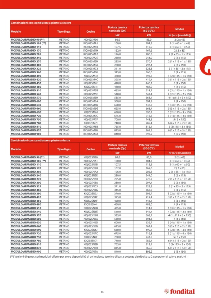(**) Versioni di generatori modulari offerte per avere disponibilità di un impianto termico di bassa potenza distribuito su 2 generatori di calore anziché 1