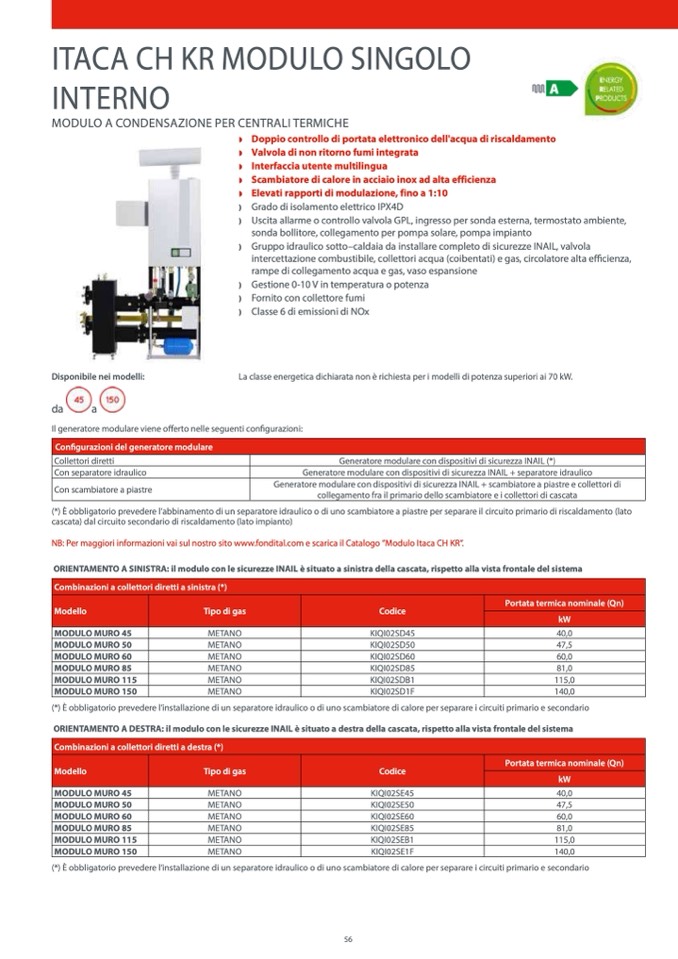 NB: Per maggiori informazioni vai sul nostro sito www.fondital.com e scarica il Catalogo ”Modulo Itaca CH KR”.