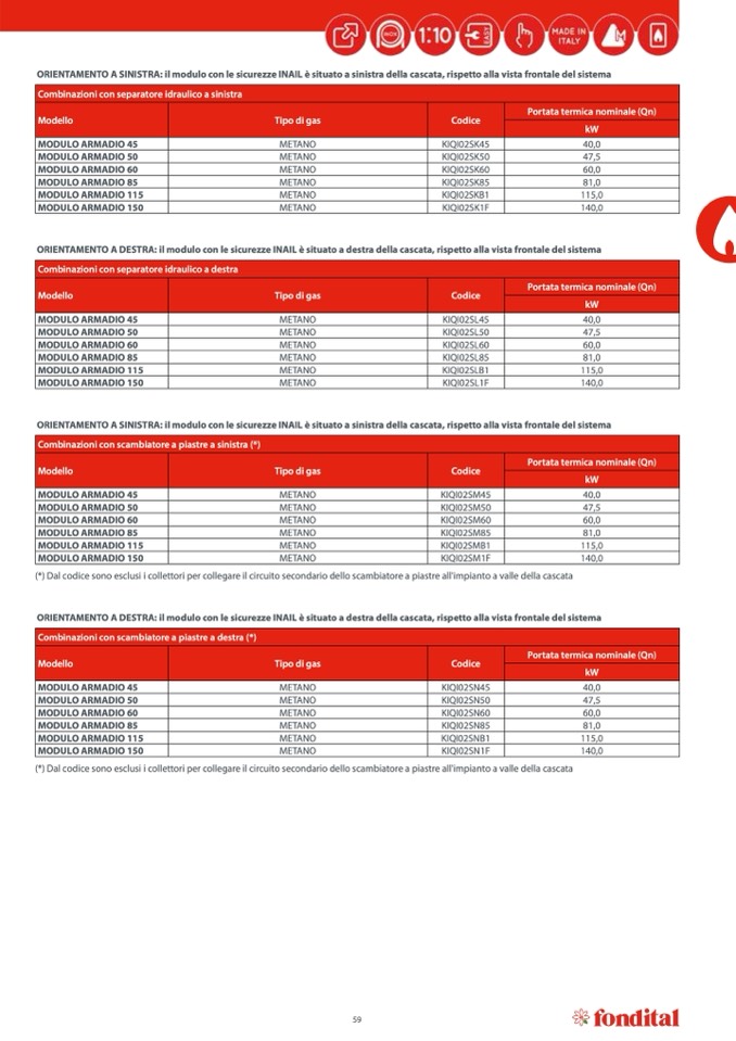 (*) Dal codice sono esclusi i collettori per collegare il circuito secondario dello scambiatore a piastre all'impianto a valle della cascata