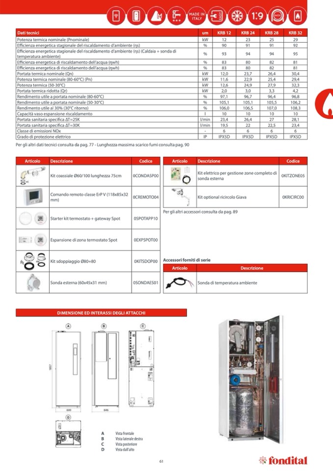 Per gli altri dati tecnici consulta da pag. 77 - Lunghezza massima scarico fumi consulta pag. 90