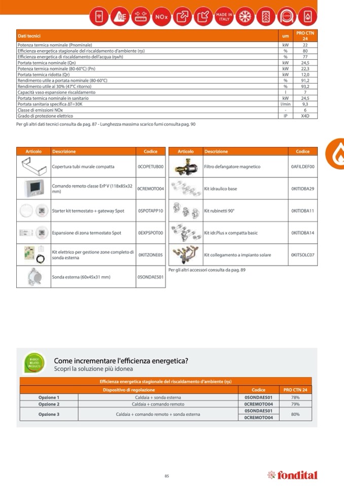 Per gli altri dati tecnici consulta da pag. 87 - Lunghezza massima scarico fumi consulta pag. 90