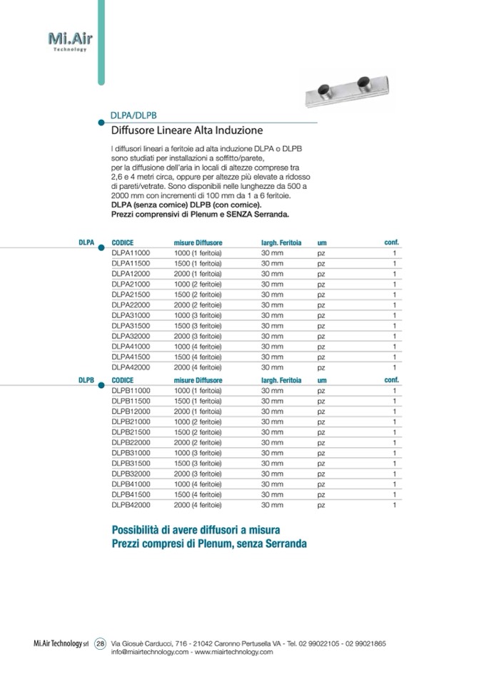 I diffusori lineari a feritoie ad alta induzione DLPA o DLPB