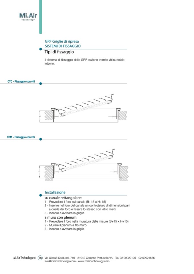 Il sistema di fissaggio delle GRF avviene tramite viti su telaio