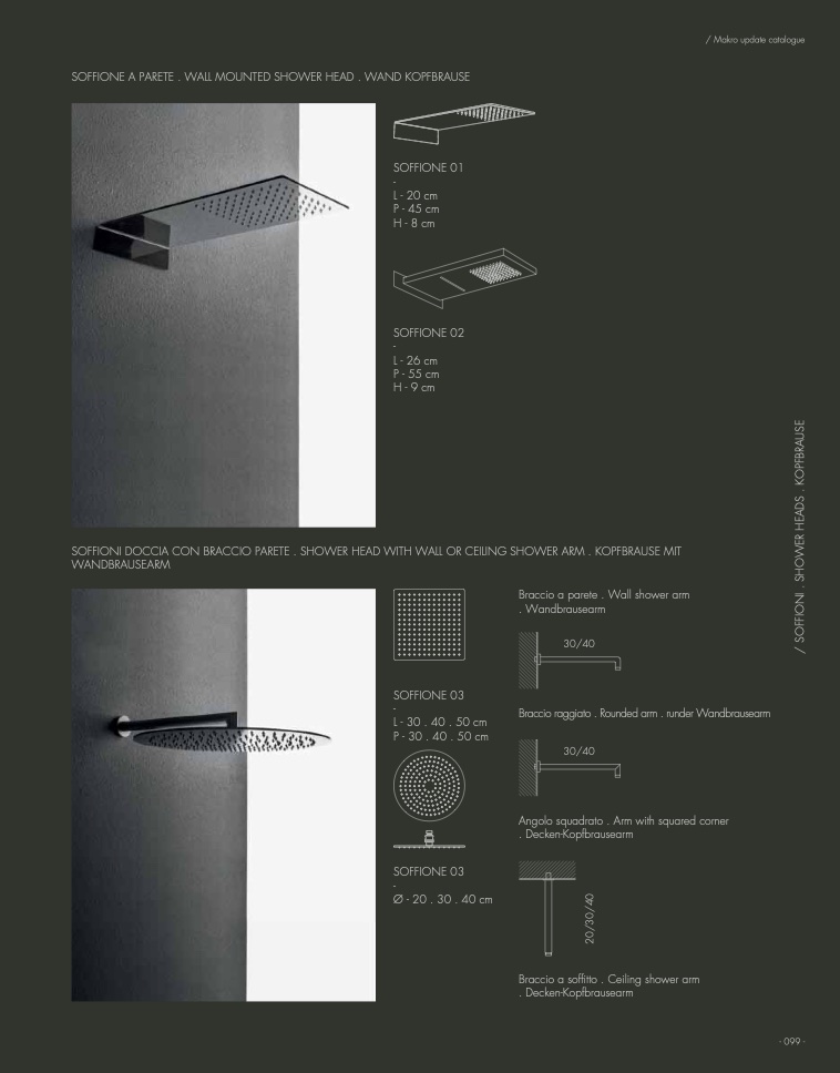 SOFFIONI DOCCIA CON BRACCIO PARETE . SHOWER HEAD WITH WALL OR CEILING SHOWER ARM . KOPFBRAUSE MIT