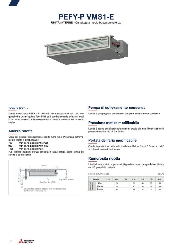 L’unità canalizzata PEFY - P VMS1-E ha un’altezza di soli 200 mm