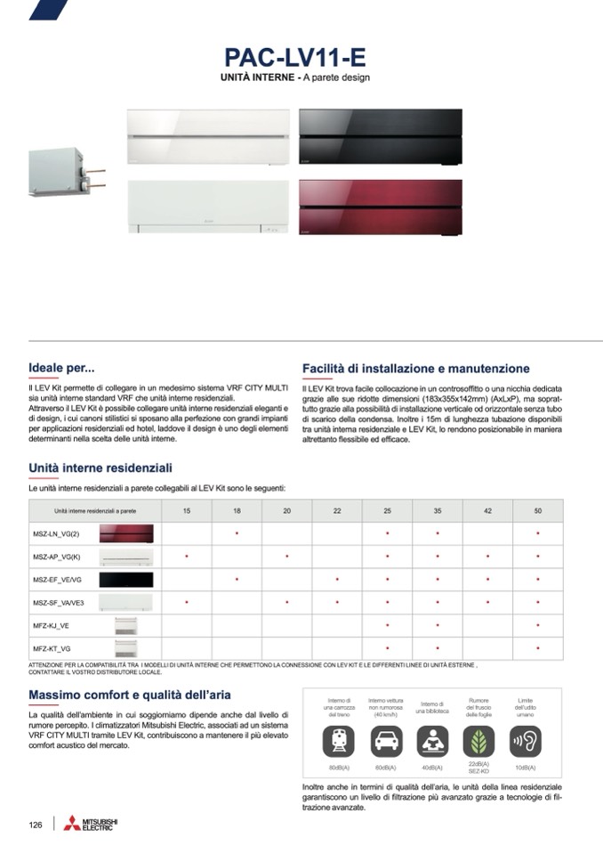 Le unità interne residenziali a parete collegabili al LEV Kit sono le seguenti: