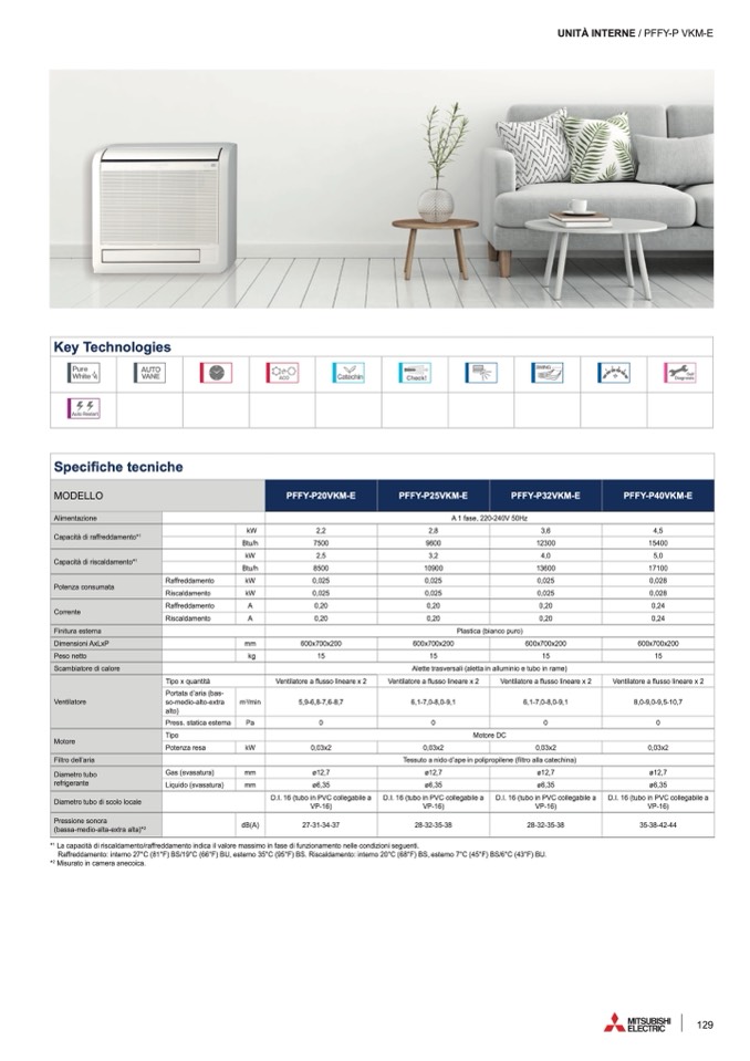 La capacità di riscaldamento/raffreddamento indica il valore massimo in fase di funzionamento nelle condizioni seguenti.