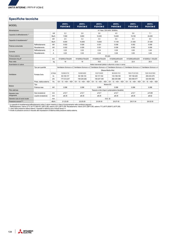 Raffreddamento: interno 27°C (81°F) DB/19°C (66°F) BS, esterno 35°C (95°F) DB. Riscaldamento: interno 20°C (68°F) BS, esterno 7°C (45°F) BS/6°C (43°F) BS.