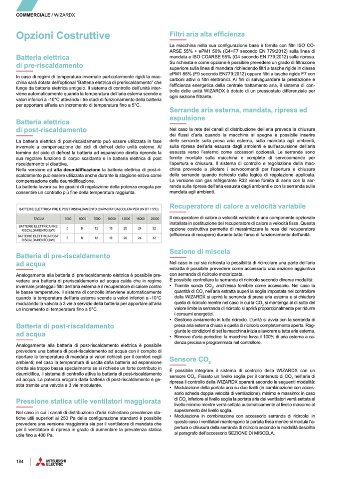 ad acqua. La potenza erogata dalla batteria di post-riscaldamento è ge-