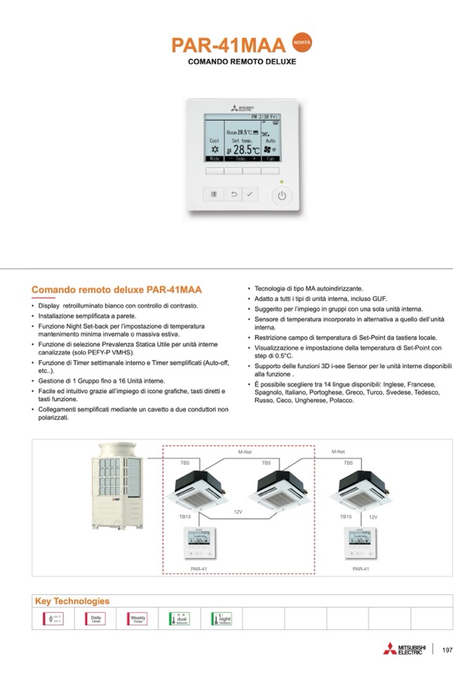 • Gestione di 1 Gruppo fino a 16 Unità interne.