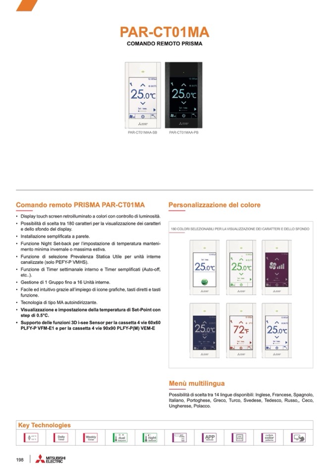 • Facile ed intuitivo grazie all’impiego di icone grafiche, tasti diretti e tasti