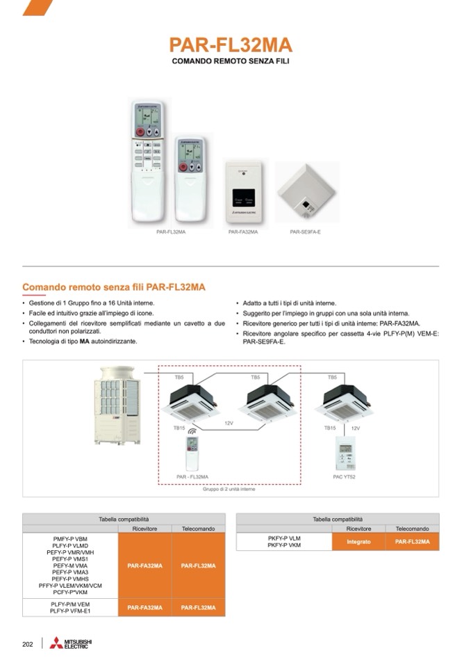 Ricevitore generico per tutti i tipi di unità interne: PAR-FA32MA.